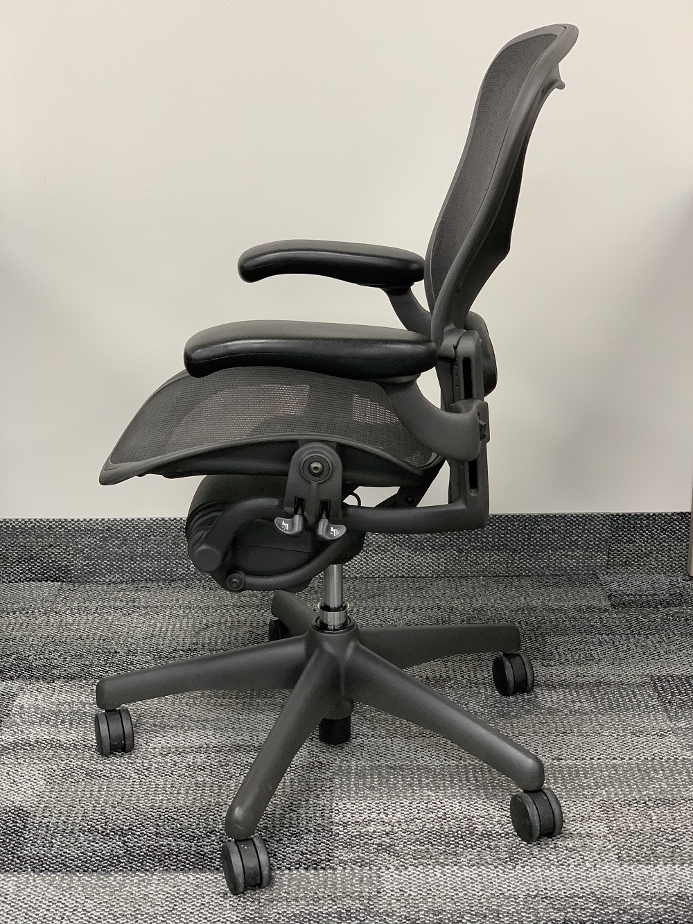 Classic Aeron comes in three sizes—small (A), medium (B), and large (C)—allowing it to fit a wider range of people than any office chair. Guided by a height-weight ratio, Herman Miller recommends Size B for people between 5'5" and 6'2" in height and weighing between 150 and 230 pounds. People with body types outside that range should consider Size A or C chairs.