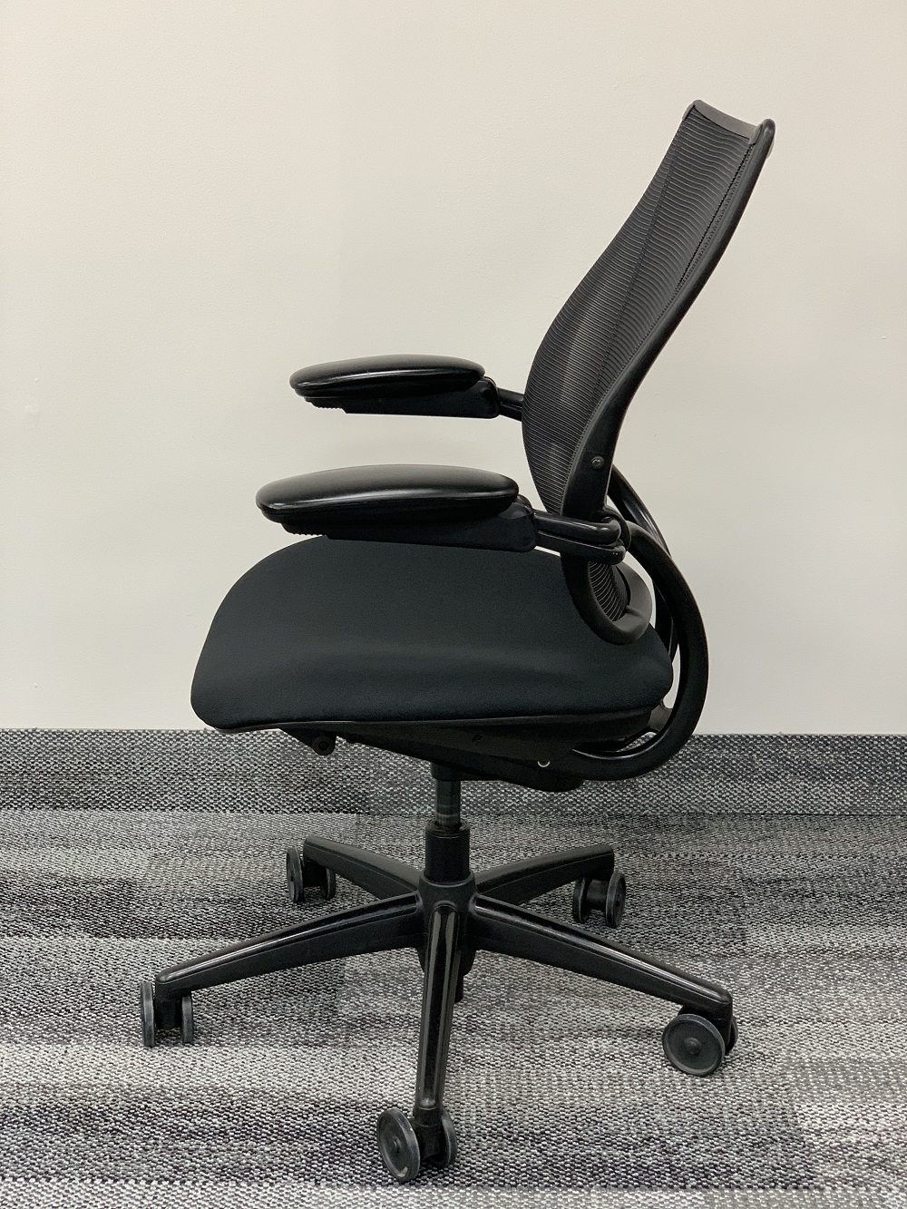 The Liberty Task chair is an intelligent mesh task chair engineered to provide automatic lumbar support for every user, as well offering simplicity and complete ease of use. Liberty was designed to offer a unique, minimal aesthetic and to provide custom comfort for every person who sits in it. Like Humanscale’s Diffrient Smart and Diffrient World chairs, Liberty uses Humanscale’s revolutionary Form-Sensing Mesh Technology and mechanism-free recline for perfect support and unprecedented comfort.